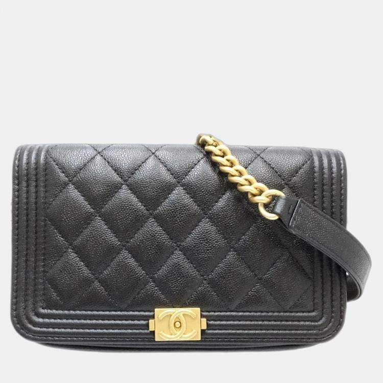 Chanel Black Caviar Skin Boy Wallet On Chain