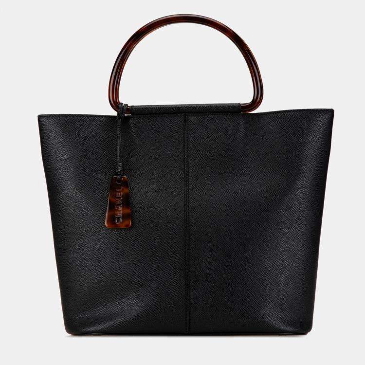 Pre Owned Chanel Black Caviar Tortoise Top Handle Tote