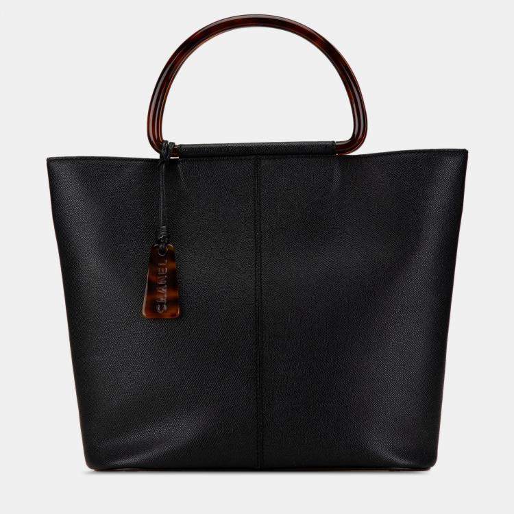 Pre Owned Chanel Black Caviar Tortoise Top Handle Tote