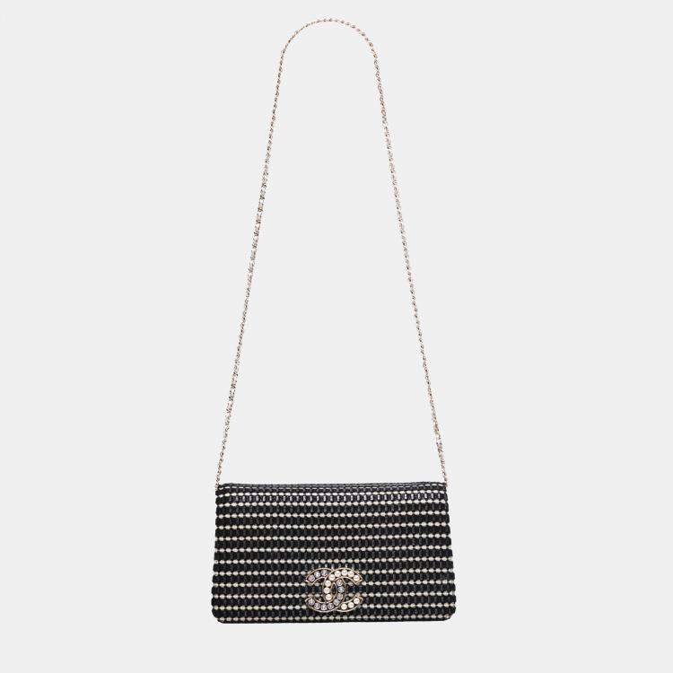 Chanel Black CC Bicolor Woven Lambskin Crystal Pearl Flap