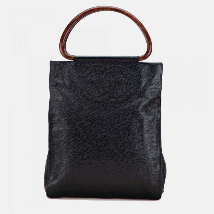 Pre Owned Chanel Black CC Caviar Wood Top Handle Tote