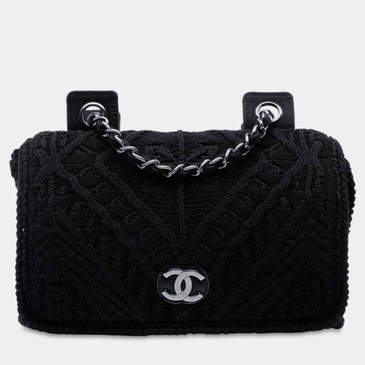 Chanel Black CC Medium Woven Crochet Knit Single Flap