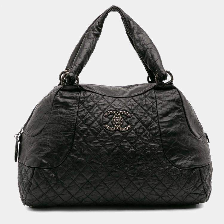 Chanel Black CC Quilted Aged Calfskin Coco Rider Bowling Bag