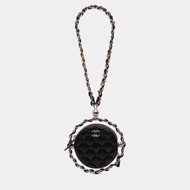 Pre Owned Chanel Black CC Quilted Lambskin Round Chain Around Clutch With Chain