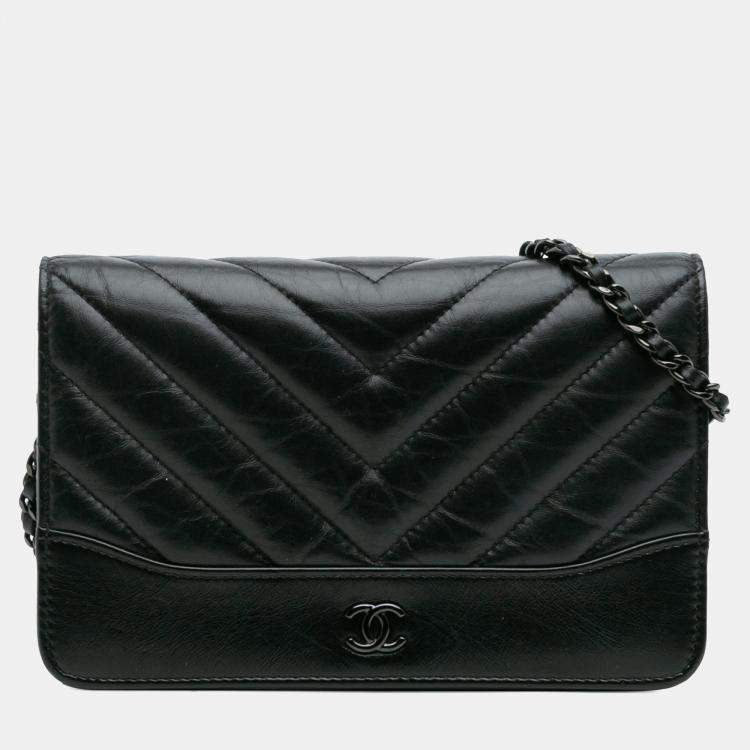 Chanel Black Chevron Aged Calfskin Gabrielle Wallet On Chain