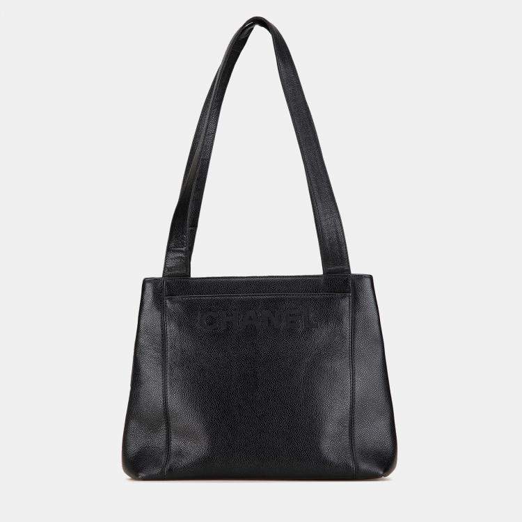 Chanel Black Embroidered Caviar Logo Shoulder Bag