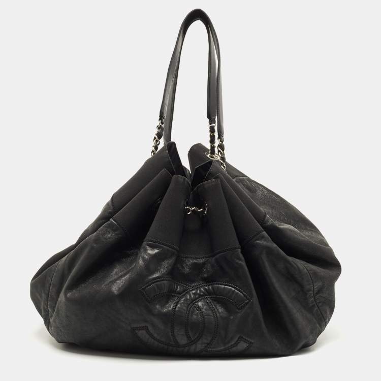 Chanel Black Iridescent Leather and Fabric CC Coco Cabas Hobo