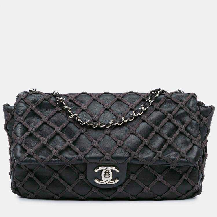 Chanel Black Jumbo Calfskin Canebiers Net Flap