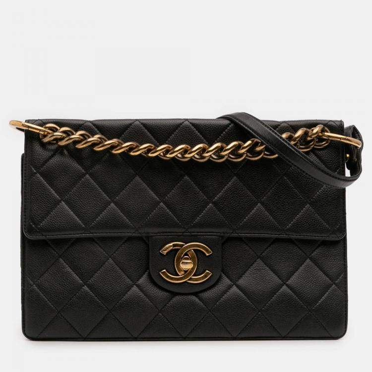 Pre Owned Chanel Black Jumbo CC Quilted Caviar Chunky Chain Flap