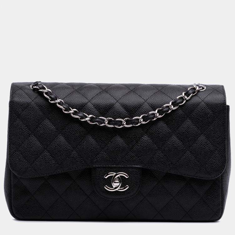 Pre Owned Chanel Black Jumbo Classic Caviar Double Flap