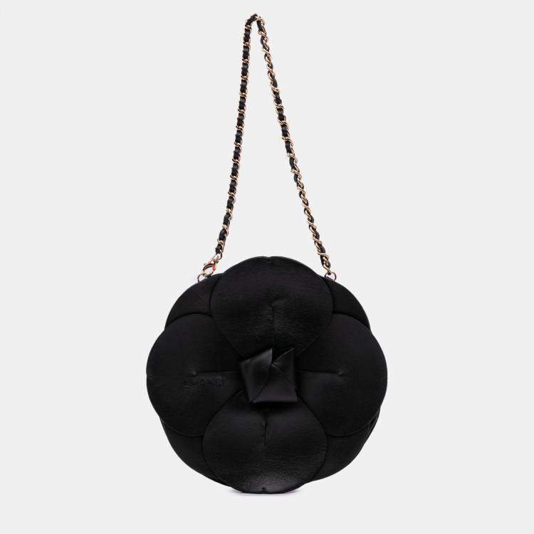 Chanel Black Lambskin and Satin Camellia Flower Evening Bag