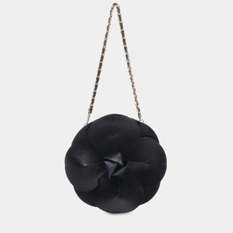 Chanel Black Lambskin and Satin Camellia Flower Evening Bag