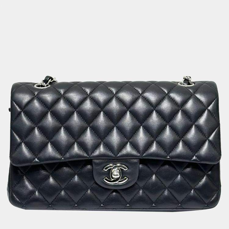 Pre Owned Chanel Black Lambskin Classic Flap F Medium Shoulder Bag