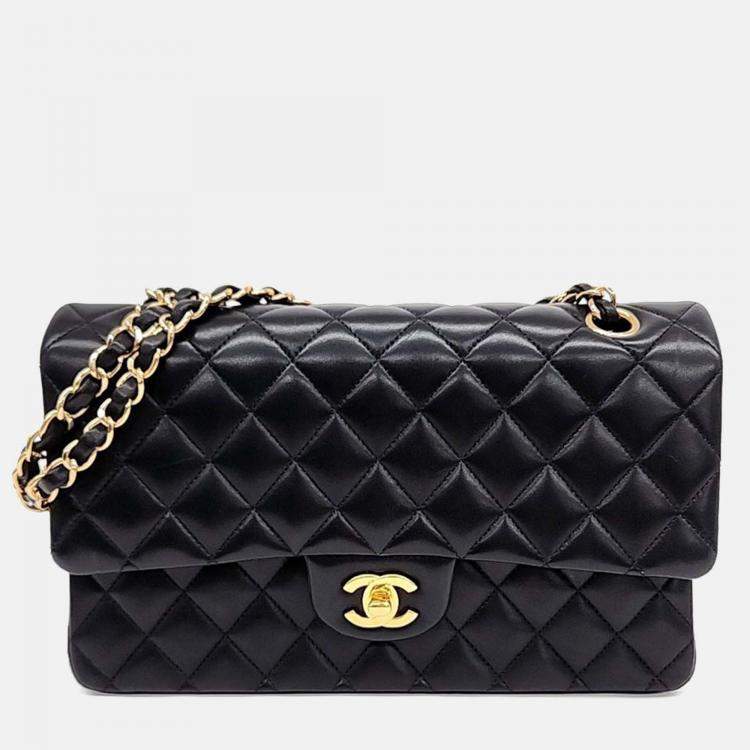 Chanel Black Lambskin Leather Lambskin Classic Medium