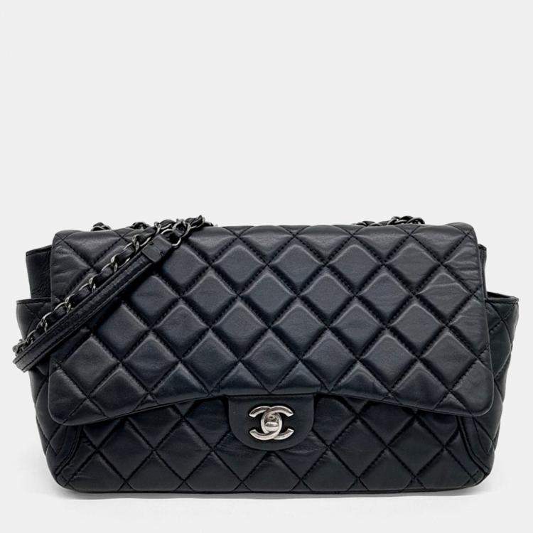 Pre Owned Chanel Black Lambskin Leather Quilted Shoulder Bag