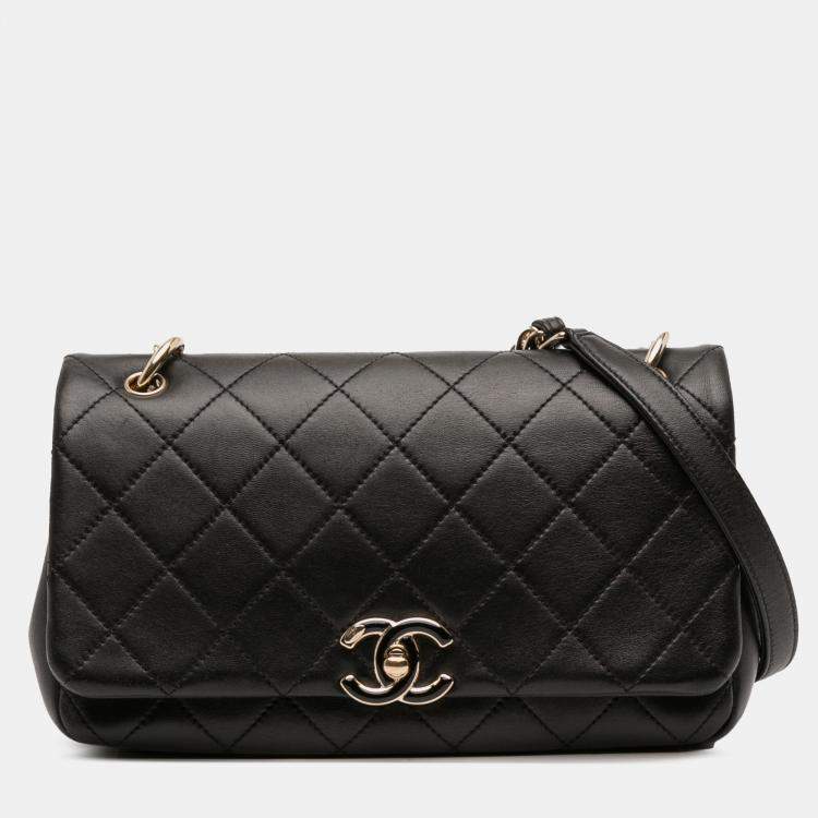 Pre Owned Chanel Black Large Lambskin Twist Chain Enamel CC Flap