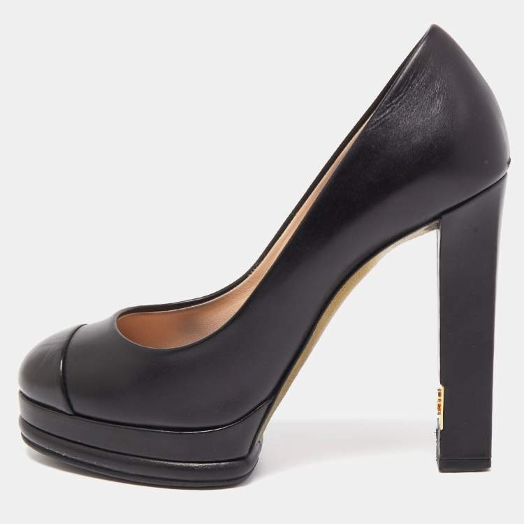 Pre Owned Chanel Black Leather CC Platform Pumps Size 36.5