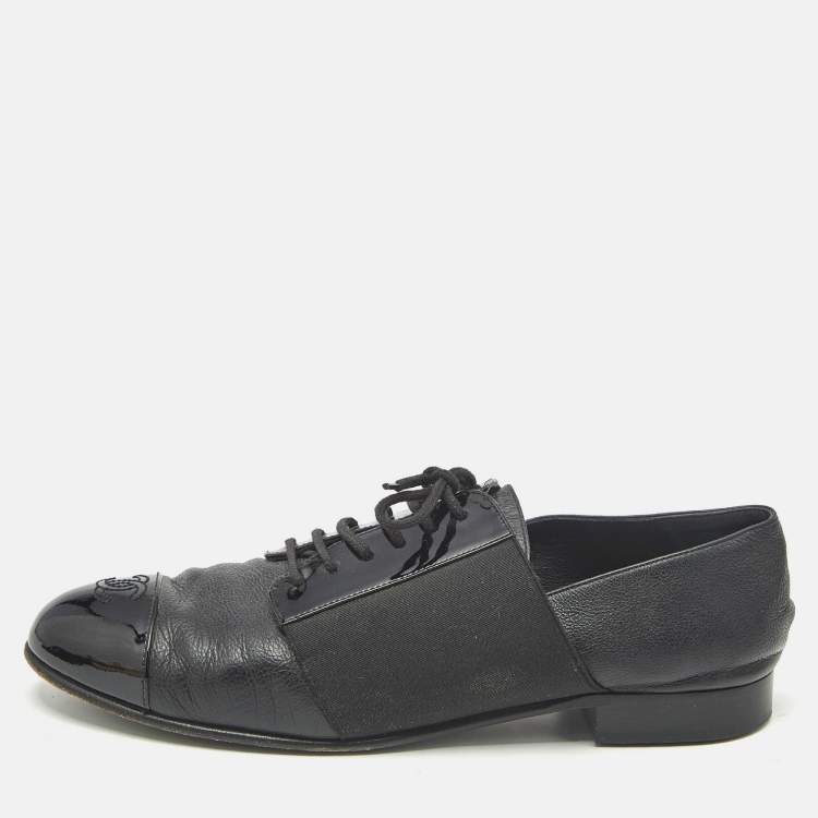 Pre Owned Chanel Black Leather Interlocking CC Logo Oxfords Size 38