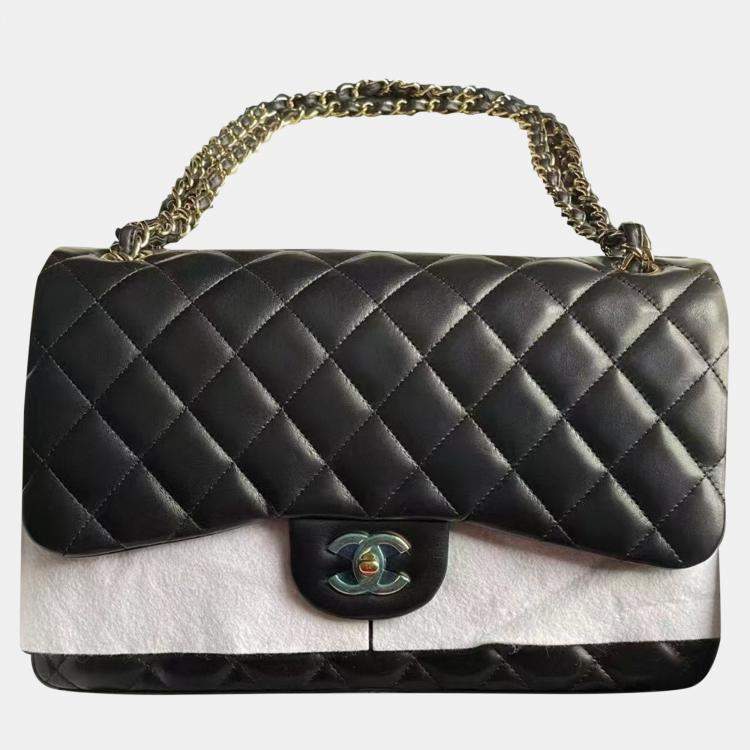 Chanel Black Leather Jumbo Classic Double Flap Shoulder Bag
