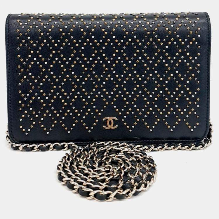 Chanel Black Leather WOC Studded Mini Crossbody Bag