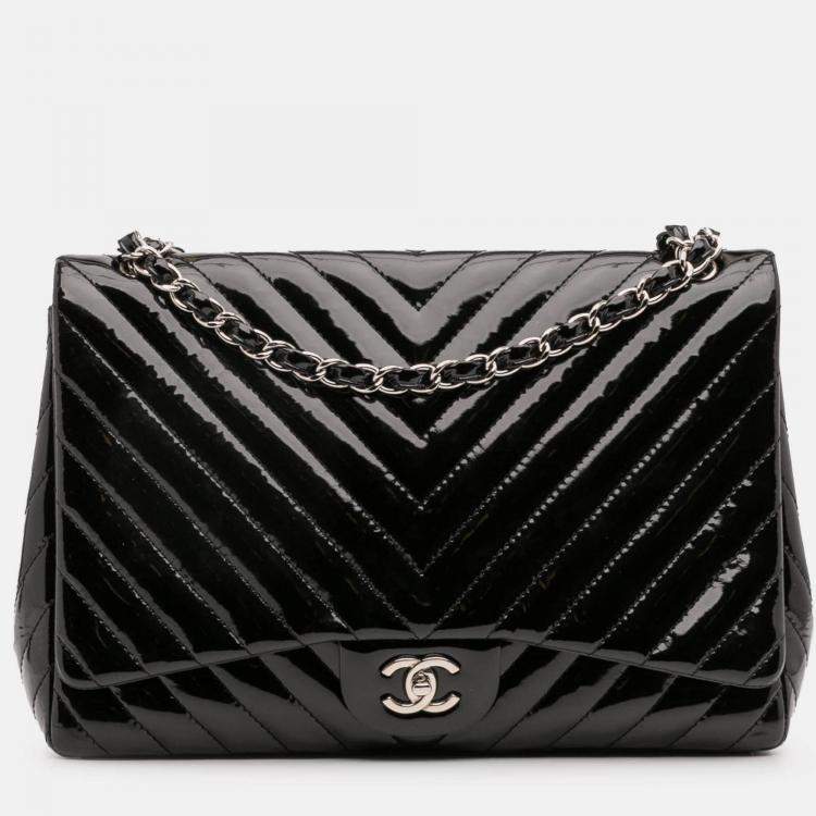 Chanel Black Maxi Classic Chevron Patent Single Flap Bag