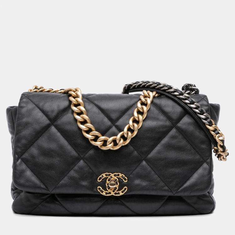 Pre Owned Chanel Black Maxi Lambskin 19 Flap