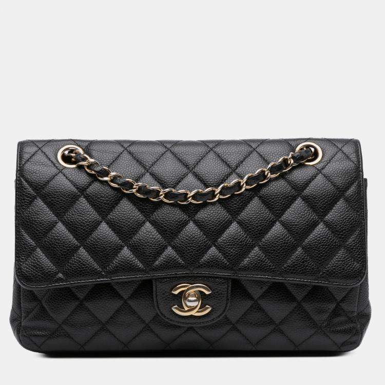 Pre Owned Chanel Black Medium Classic Caviar Double Flap