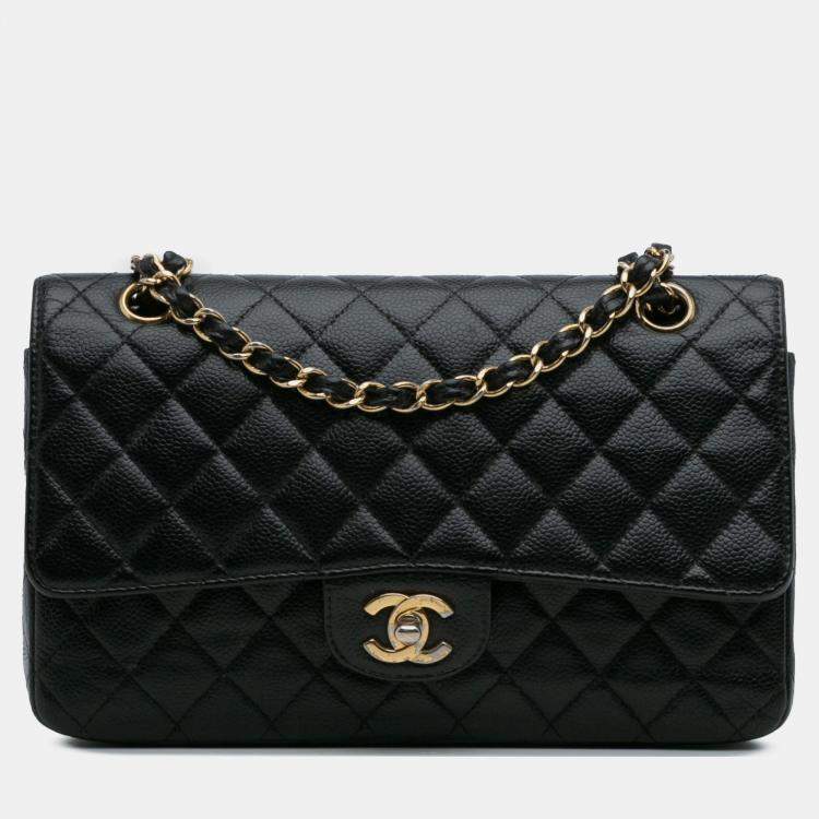 Pre Owned Chanel Black Medium Classic Caviar Double Flap