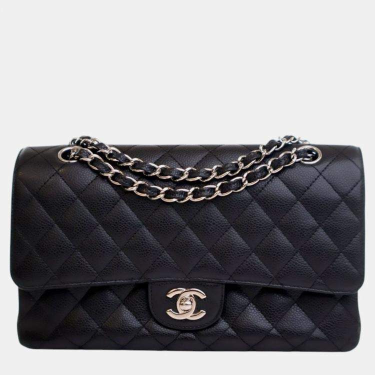 Pre Owned Chanel Black Medium Classic Caviar Double Flap