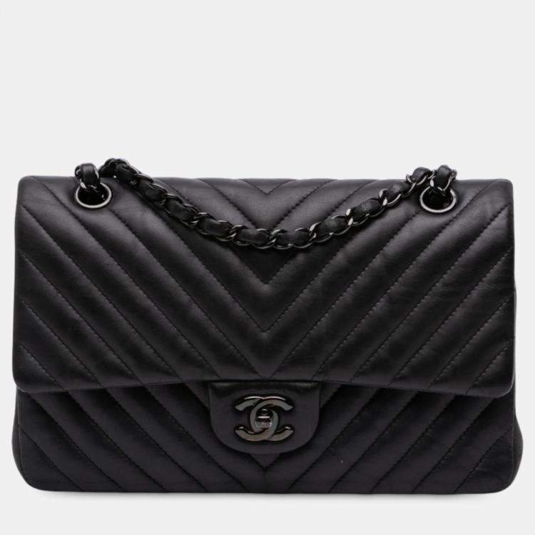 Chanel Black Medium Classic Chevron Lambskin Double Flap