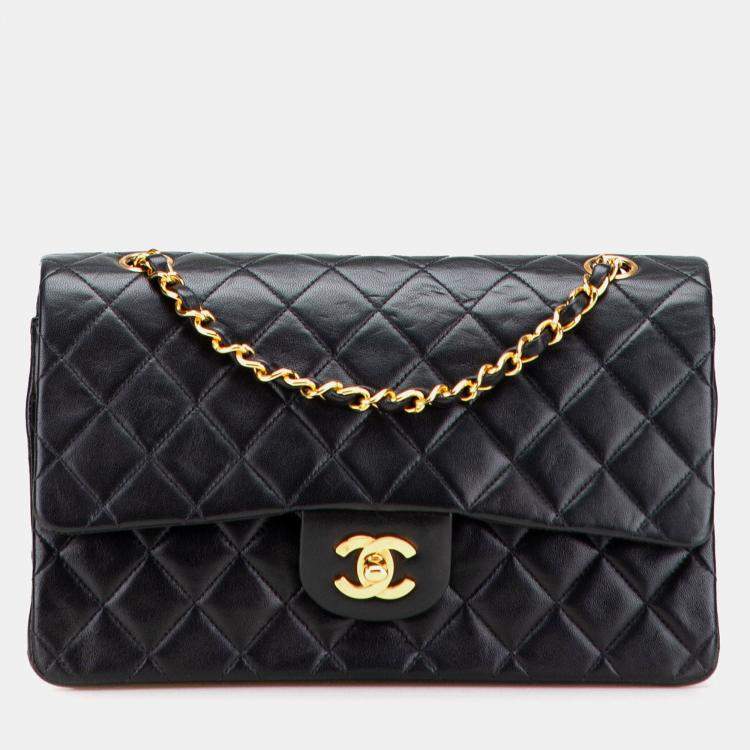 Pre Owned Chanel Black Medium Classic Lambskin Double Flap