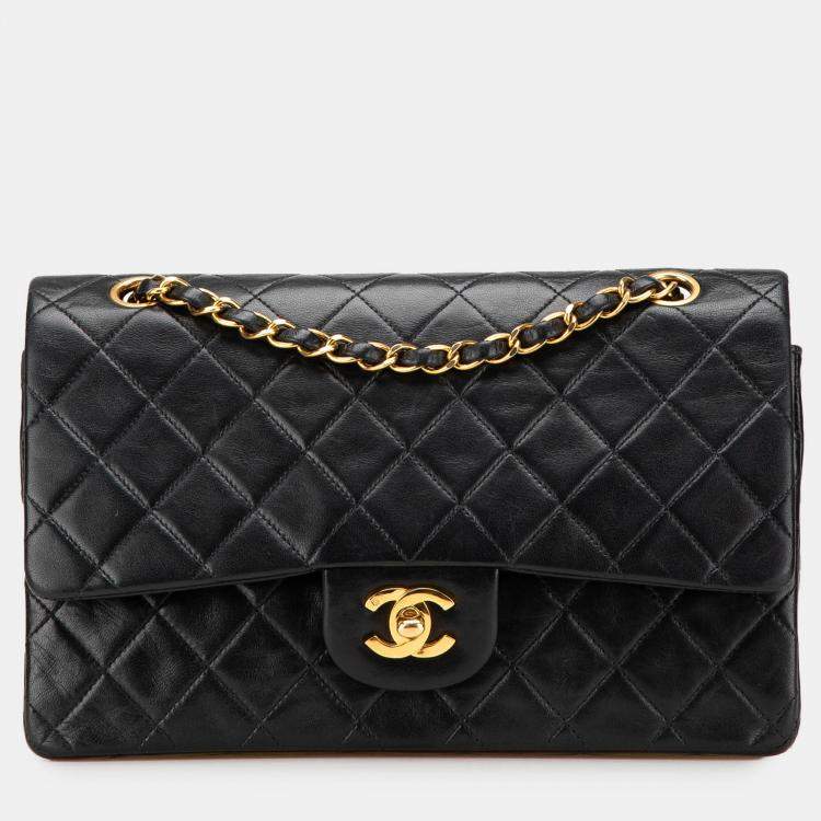 Pre Owned Chanel Black Medium Classic Lambskin Double Flap