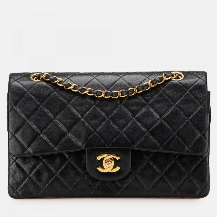 Pre Owned Chanel Black Medium Classic Lambskin Double Flap