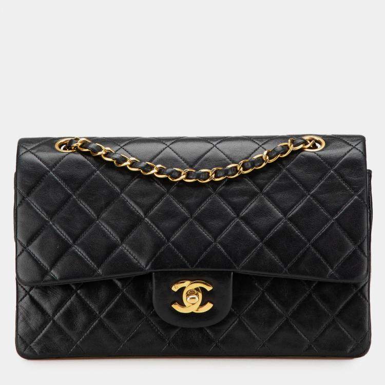 Pre Owned Chanel Black Medium Classic Lambskin Double Flap