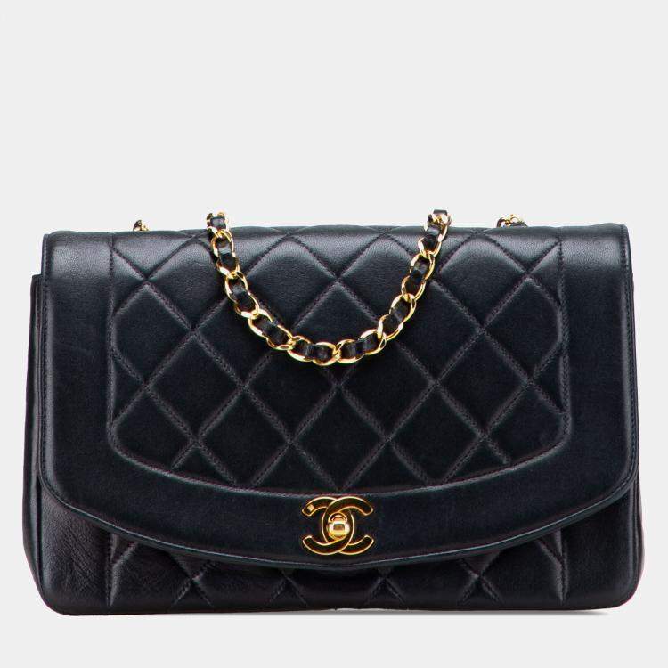 Pre Owned Chanel Black Medium Lambskin Diana Flap Blag