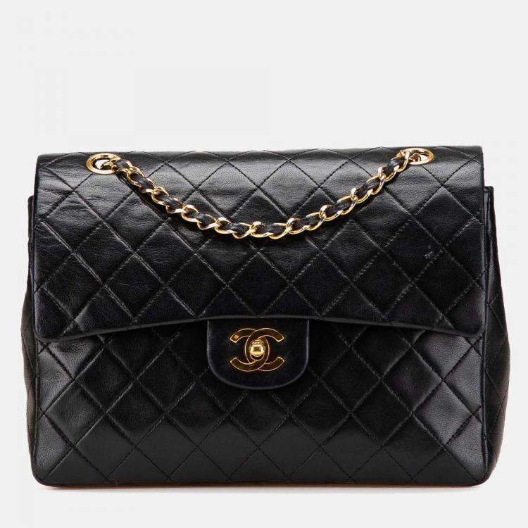 Pre Owned Chanel Black Medium Tall Classic Lambskin Double Flap