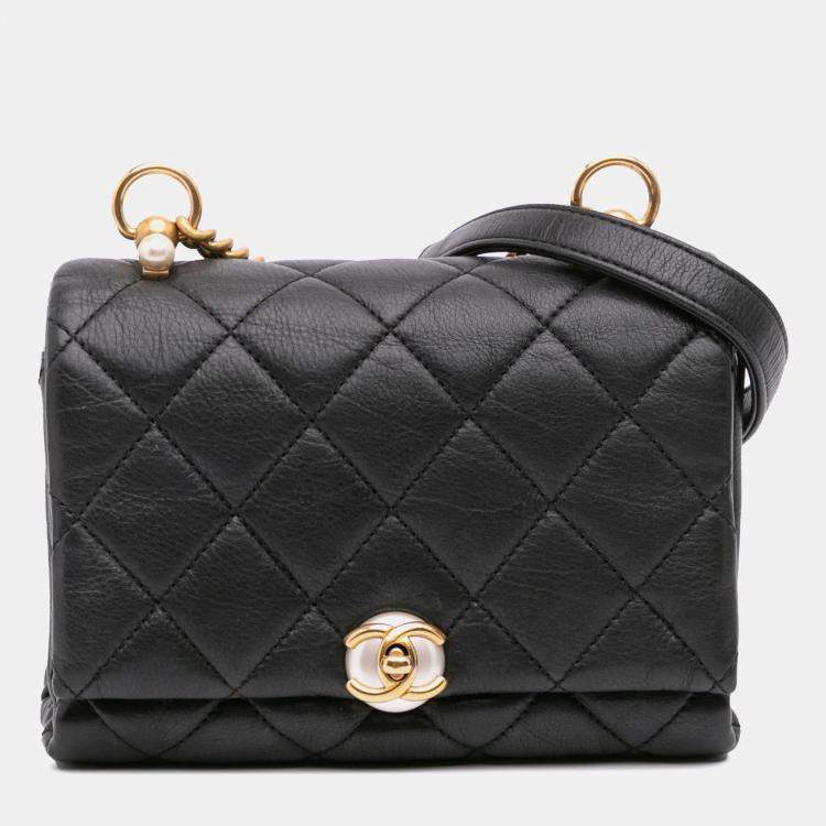 Pre Owned Chanel Black Mini Quilted Calfskin Pearl CC Accordion Flap