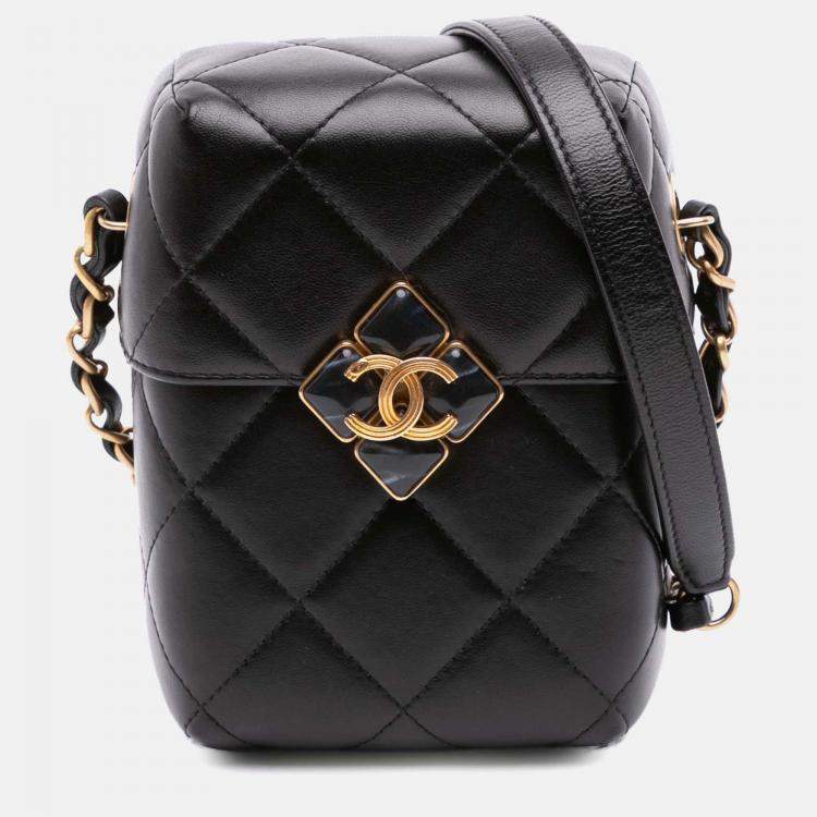 Chanel Black Mini Quilted Lambskin Diamond Lock Phone Holder