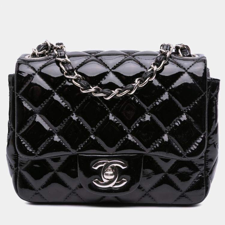 Pre Owned Chanel Black Mini Square Classic Patent Single Flap
