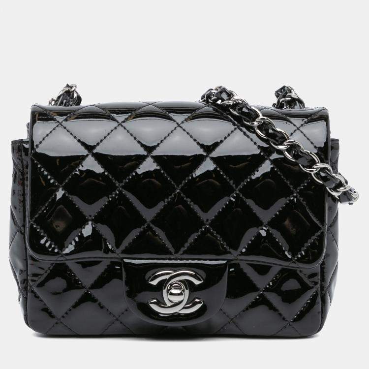 Pre Owned Chanel Black Mini Square Classic Patent Single Flap