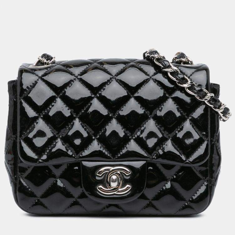 Pre Owned Chanel Black Mini Square Classic Patent Single Flap