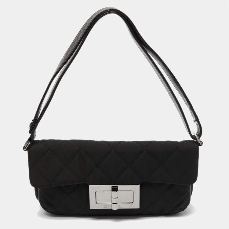 Chanel Black Nylon and Leather Giant Reissue Flap Shoulder Bag