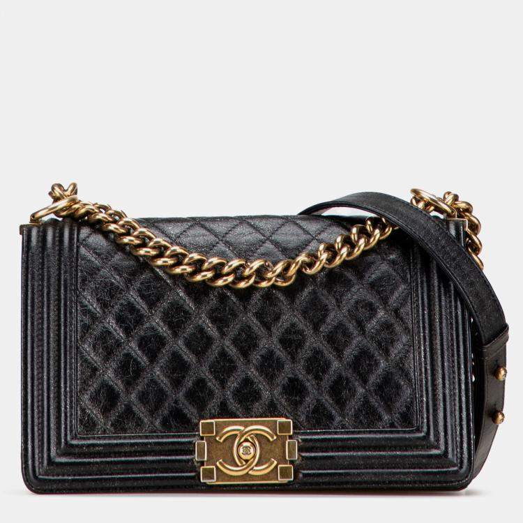 Pre Owned Chanel Black Old Medium Cracked Metallic Calfskin Boy Flap