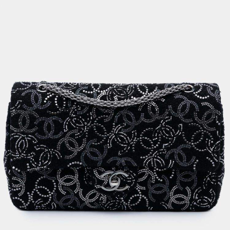 Chanel Black Paris-Shanghai Medium Tweed Strass Embellished Pudong Double Flap