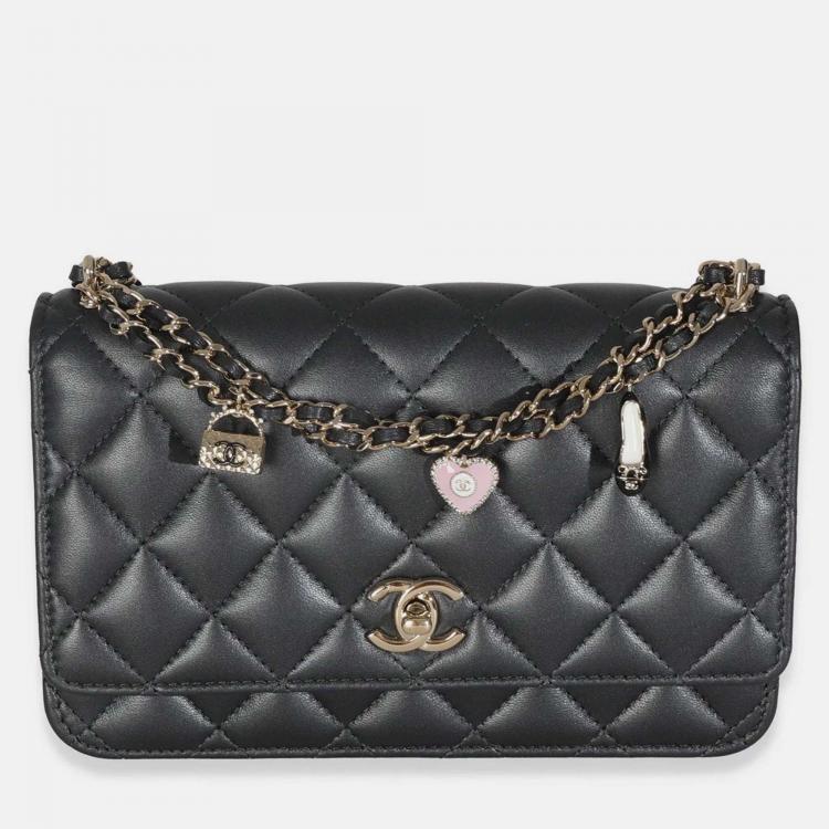 Chanel Black Pearly Quilted Lambskin Charms Wallet On Chain