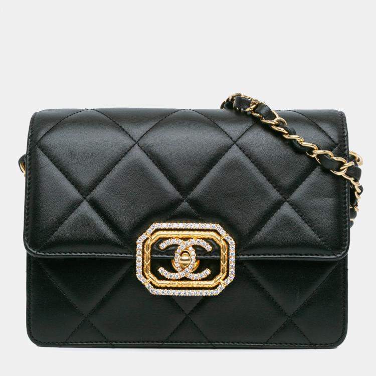 Chanel Black Quilted Lambskin Octagonal Buckle Crossbody