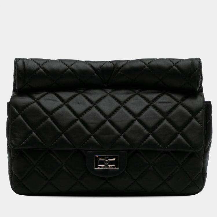 Chanel Black Reissue 2.55 Metallic Lambskin Roll Clutch
