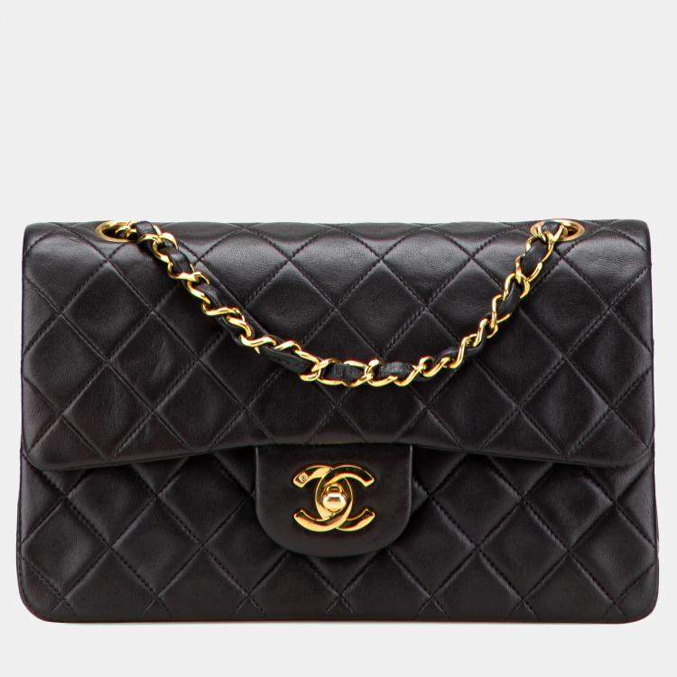 Pre Owned Chanel Black Small Classic Lambskin Double Flap