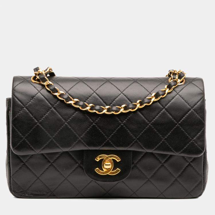 Pre Owned Chanel Black Small Classic Lambskin Double Flap