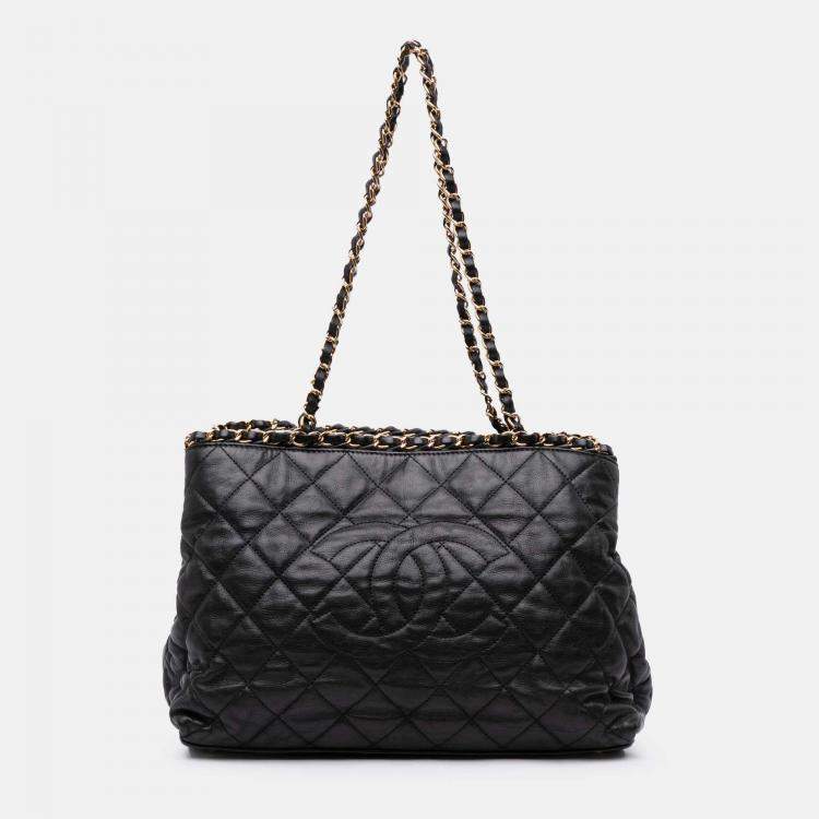 Chanel Black Small Quilted Calfskin Chain Me Tote